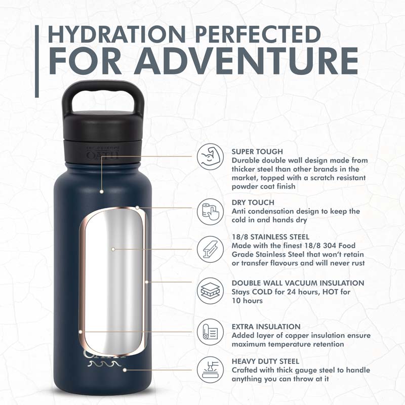 With its durable construction, superior vacuum insulation, and reliable design, the Outdoor Oath bottle isn1t just a bottle - it's your hydration partner.