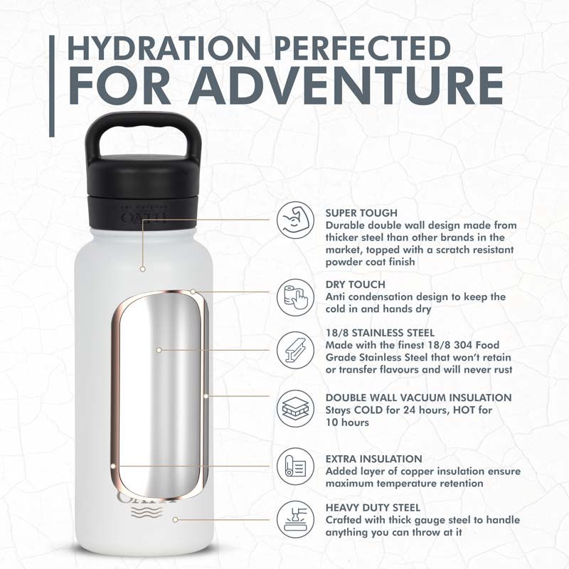 With its durable construction, superior vacuum insulation, and reliable design, the Outdoor Oath bottle isn1t just a bottle - it's your hydration partner.