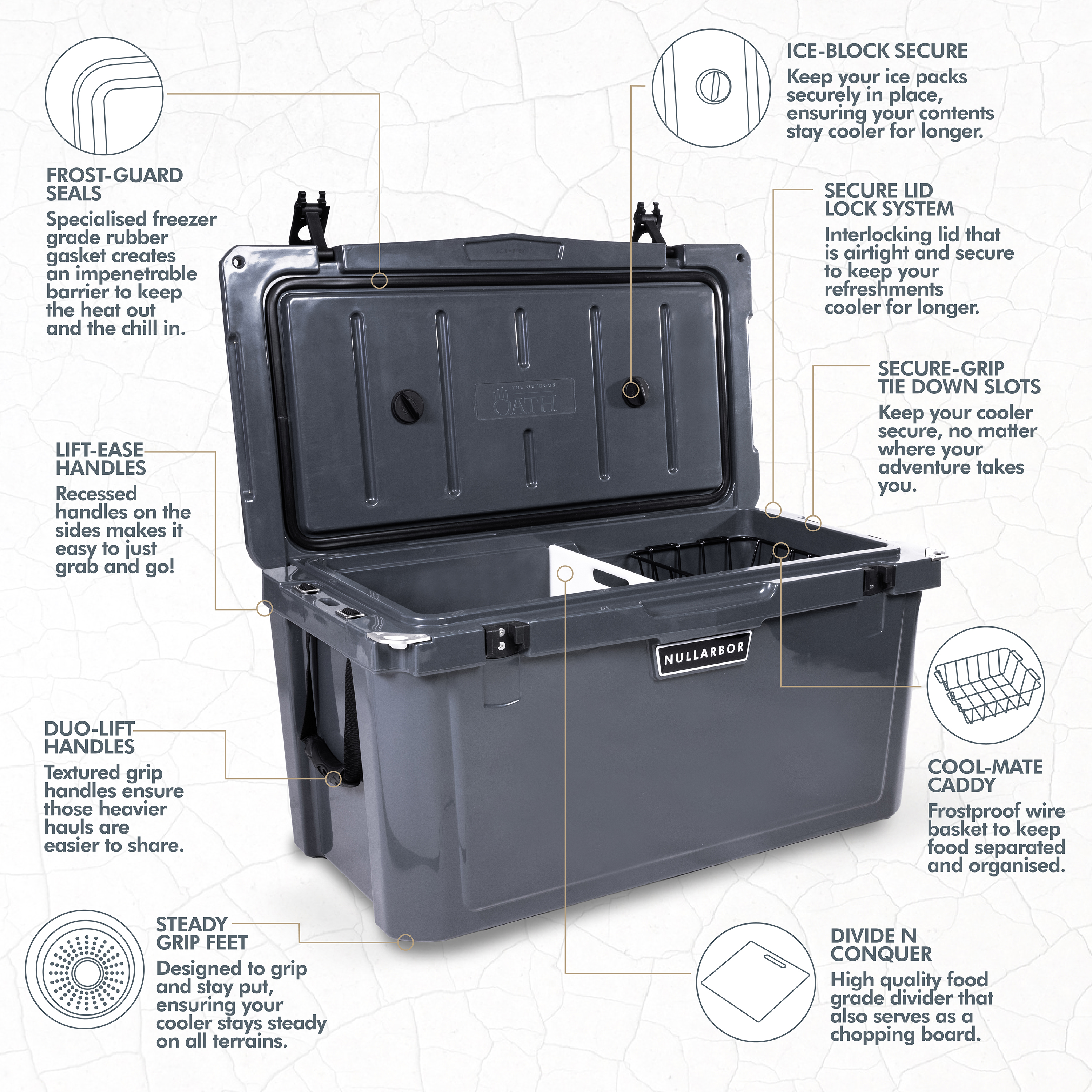 Whether you're embarking on an Outback expedition, out fishing or simply enjoying a day with some mates, the Nullarbor cooler range is here to ensure your refreshments stay icy cold. Features